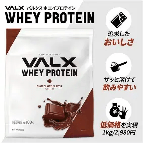 - ホエイプロテイン100%、またはソイプロテイン100%タイプ。さらに、ビタミンB群・ビタミンC・ビタミンDなども配合されていて、筋肉づくりだけでなく健康維持にも考慮されている。